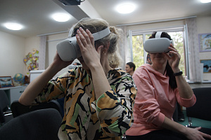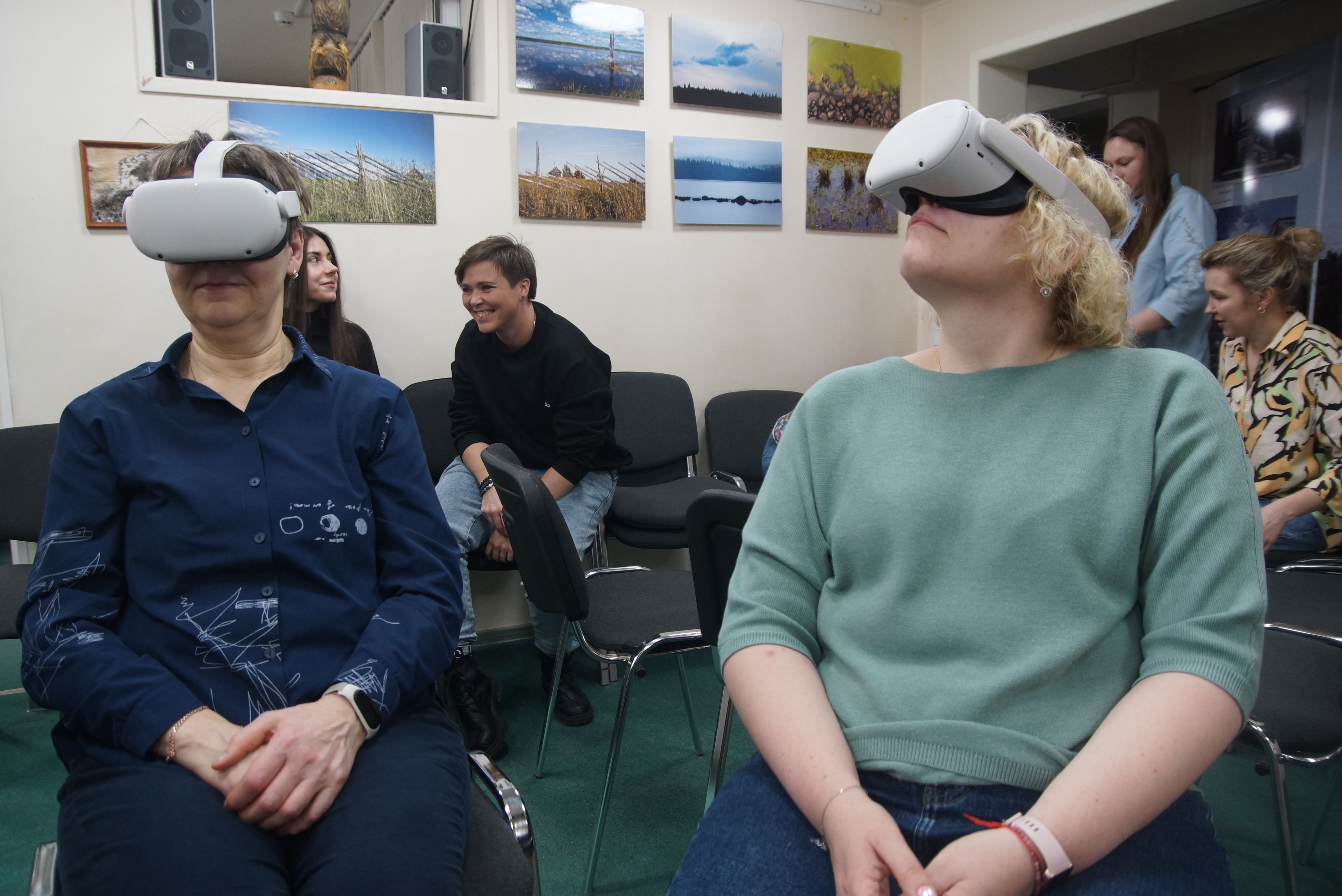 Сотрудники всех служб Парка погрузились в мир заповедной природы Водлозерья. Благодаря современным технологиям прогуляться по национальному парку теперь можно не выходя из рабочего кабинета. VR-очки перенесли сотрудников в летнее Водлозерье: там можно было прокатиться на лодке по Водлозеру, прогуляться рядом с Ильинским погостом и подняться на колокольню, "пролететь" над Вамской плотиной и деревней Куганаволок.