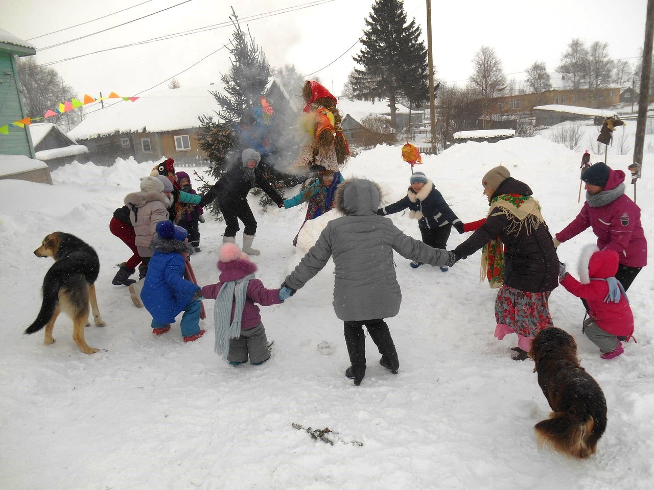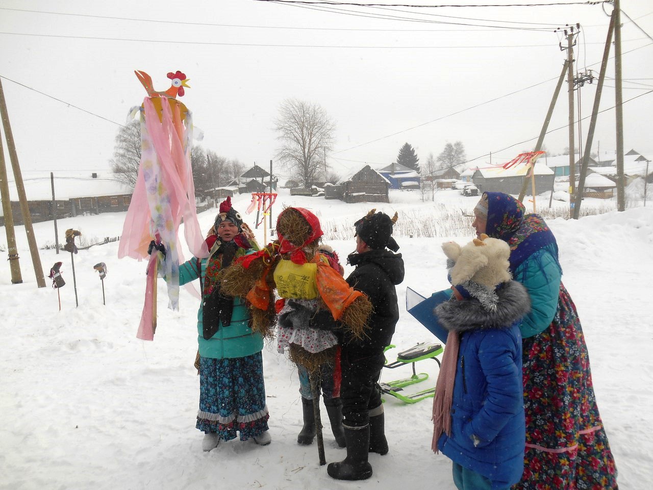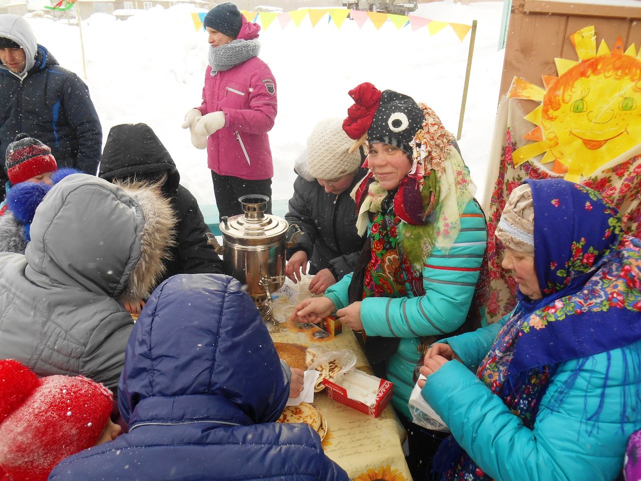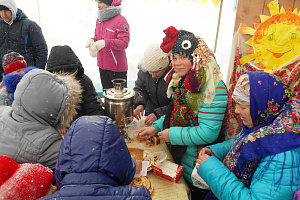 У Дома культуры собрались жители деревни: на праздник пришел и стар, и млад. Масленичные гуляния начались с задорных русских народных песен, которые задали хорошее настроение всем собравшимся.