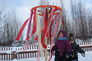 Жители деревни встали в дружный хоровод, традиционную карусель, представлявшую, как и сотни лет назад, вертящееся на шесте колесо с разноцветными лентами. Каждый выбрал ту ленту, цвет которой ему больше по душе пришёлся, загадал заветное желание и в хороводе закружился.
