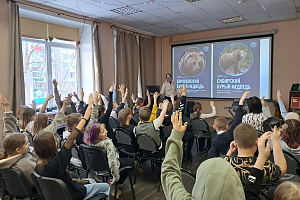 В минувший четверг конференц-зал библиотеки заполнили школьники. Для учеников 4-х и 5-х классов сотрудники парка провели занятие в рамках проекта «В соседстве с медведями». Самый крупный хищник северной тайги, один из символов Карелии и герой многочисленных легенд и сказок предстал перед ребятами во всей красе. Юные кондопожане не только хорошо знают бурого медведя, но и осведомлены о его родственниках: вопросы о белом, очковом и гималайском медведях не вызвали у них затруднений. А вот о бурой медведице по имени Маня, чьи маршруты более года изучают специалисты парка, школьники услышали впервые. Они с интересом узнали о её жизни, привычках, а также о ходе проекта и выводах исследователей.