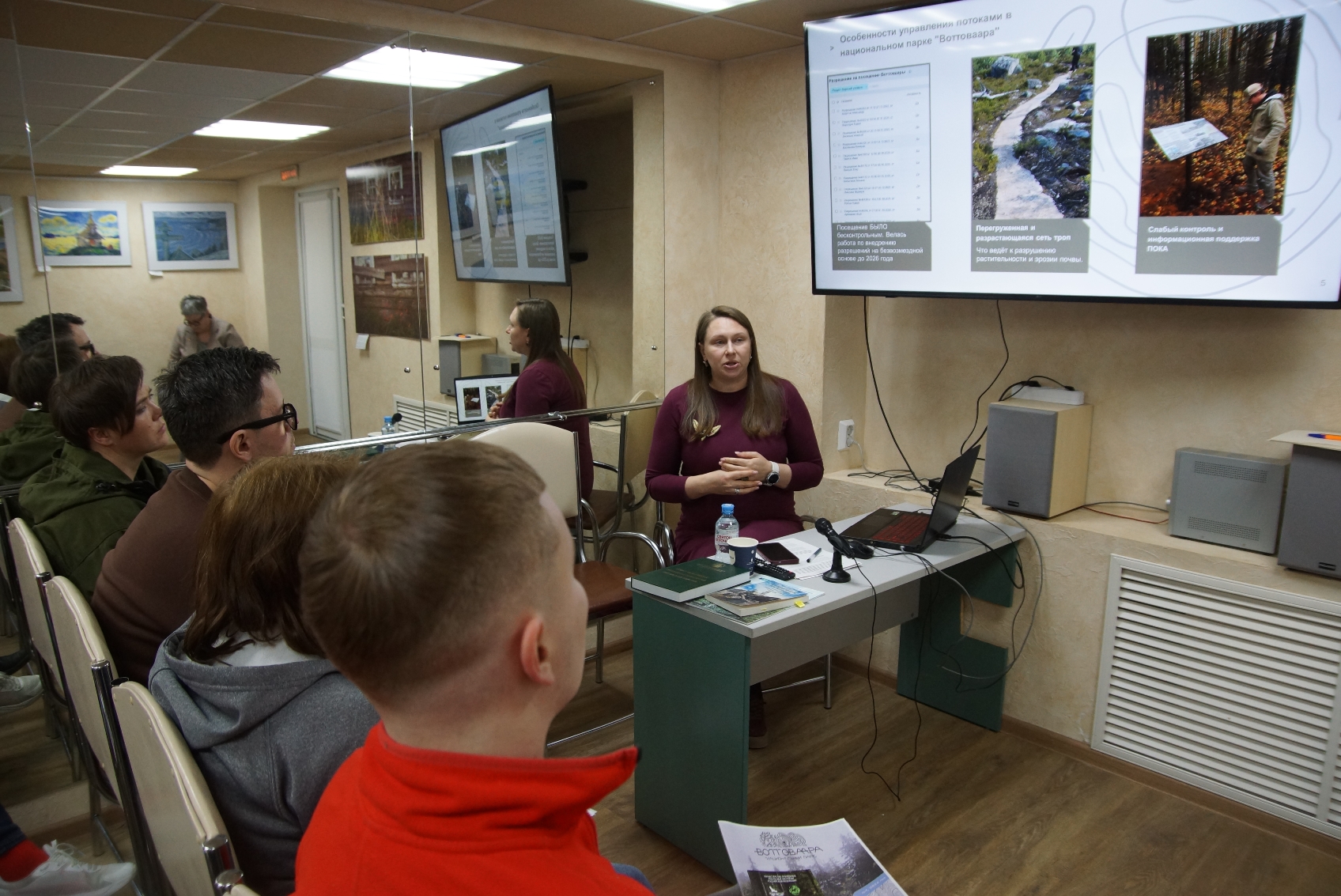 Первой с докладом выступила заместитель директора парка Екатерина Яркова. Она представила актуальную схему зонирования, анонсировала запуск новых туристских маршрутов, которые в настоящее время проходят финальную стадию согласования («отточкованы»), и рассказала о планах по развитию инфраструктуры.