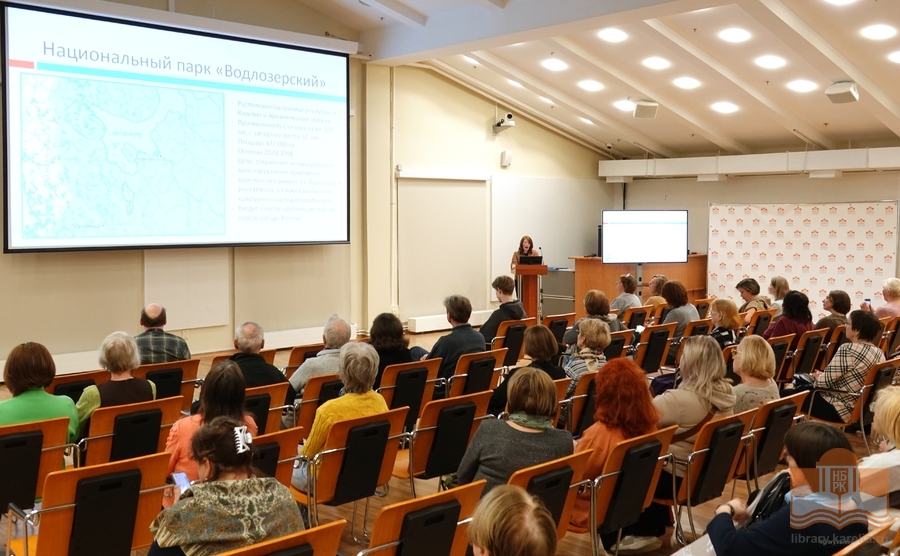 Спикером выступила Анна Всеволодовна Прушинская, начальник отдела экологического просвещения и туризма. В своем выступлении она поделилась результатами свежих архивных исследований, которые дополняют и углубляют знания об уникальном ландшафте Водлозерья.