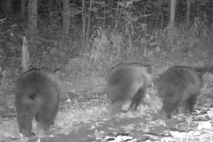Специалисты Водлозерского национального парка получили уникальные видеоматериалы с фотоловушек, работавших летом и в начале осени в глубине заповедных лесов. Среди множества записей особую ценность представляют кадры, на которых запечатлена бурая медведица с тремя медвежатами.