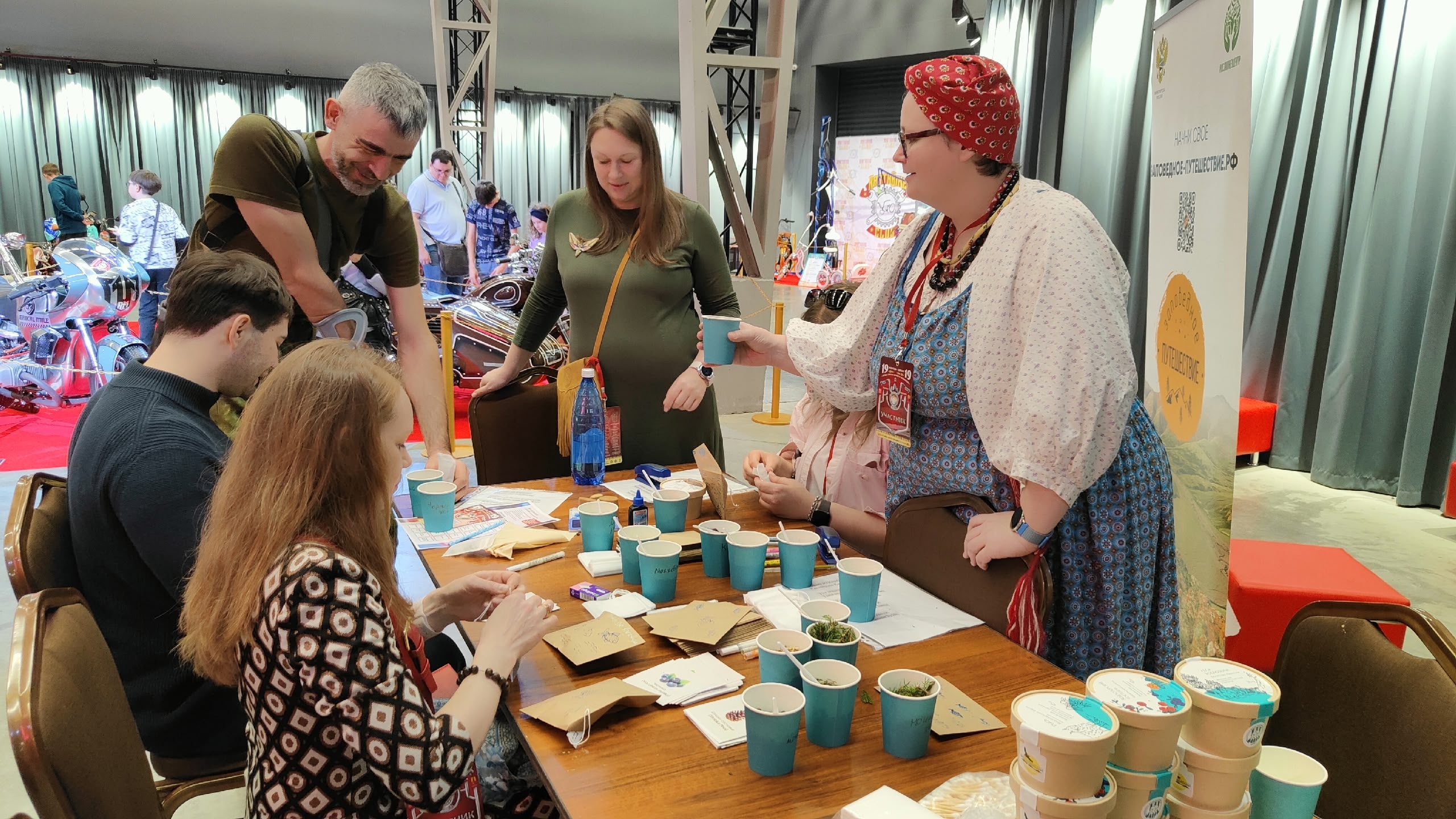 Особый интерес к мастер-классу проявили дети и посетительницы выставки, но вскоре к ним присоединились и байкеры, для которых знакомство с травами Водлозерья стало настоящим открытием. В результате у каждого участника остался не только собственноручно составленный чайный пакетик, но и желание узнать больше о природе Карелии.