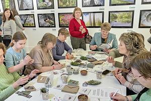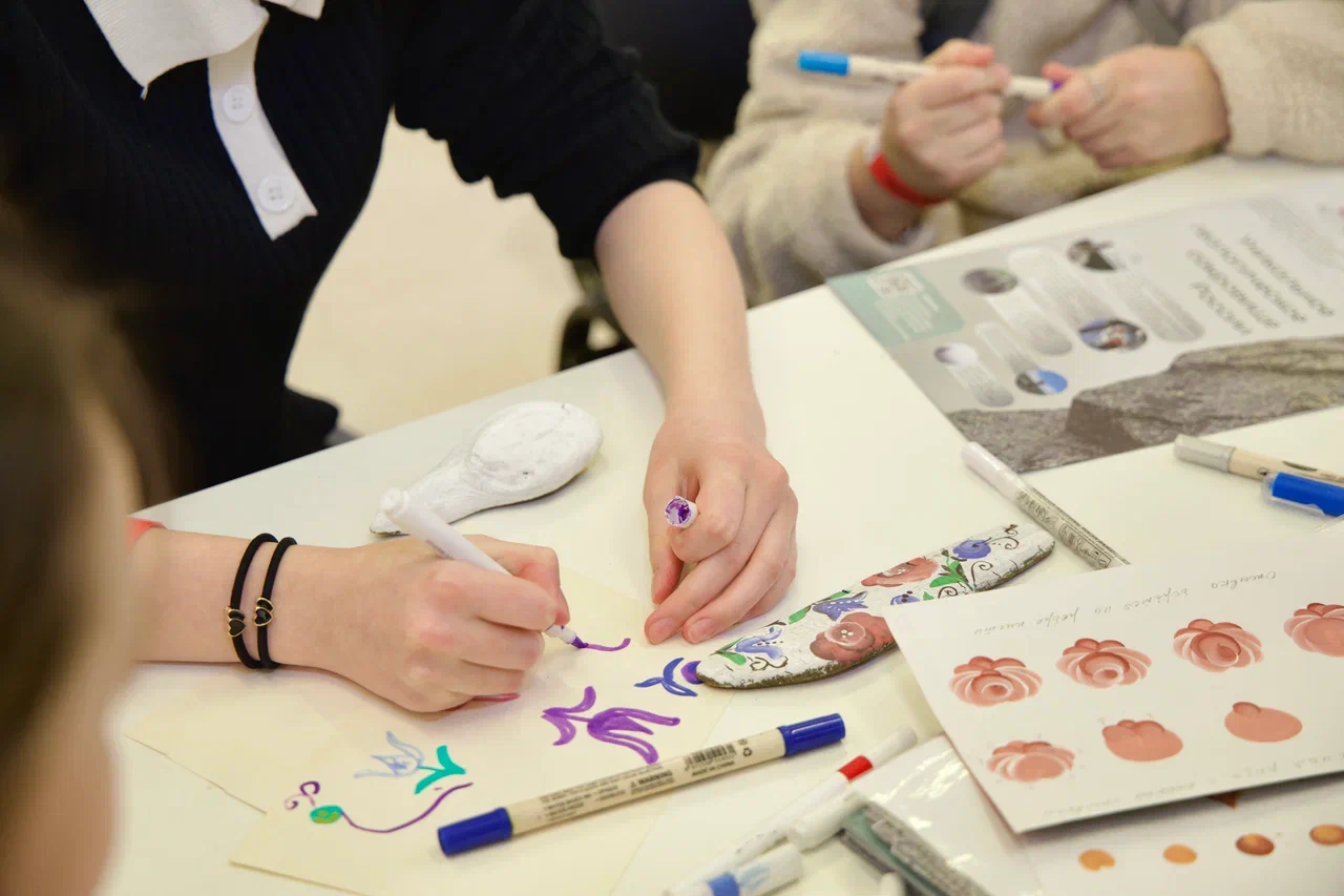 На втором мастер-классе «Дрифтвуд: сувенир из сердца Водлозерья» гости создавали экосувениры своими руками. В основе — дрифтвуд, дерево, отполированное водами озера Водлозеро и бережно собранное специалистами парка. Под кистями участников на дереве расцветали узоры карельской росписи: цветы и ягоды. Каждый унёс с собой не просто сувенир, а настоящую частичку заповедной природы.