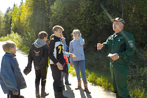 Экскурсию старший госинспектор Евгений Холодов начал от усадьбы национального парка. Он погрузил юных гостей в мир птиц с первых минут. Ласточки стали первыми пернатыми, встретившимися на пути ребят. Школьники обсудили отличительные признаки обитающих в парке видов ласточек.