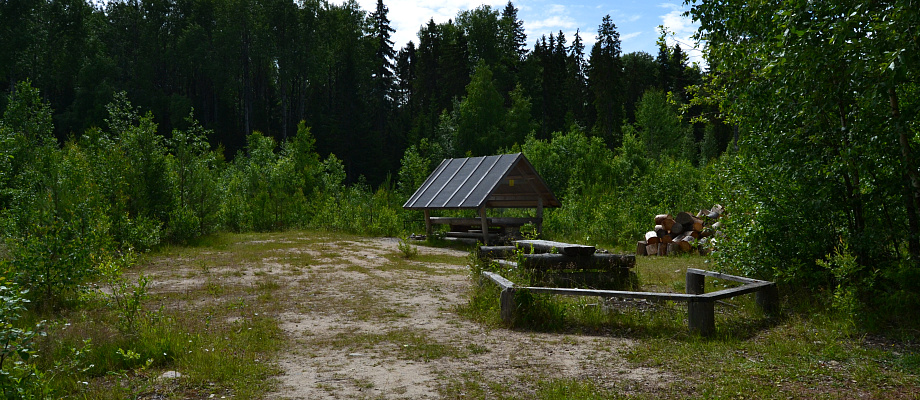 Туристическая стоянка с беседкой и туалетом расположена в Карельской части НП "Водлозерский".