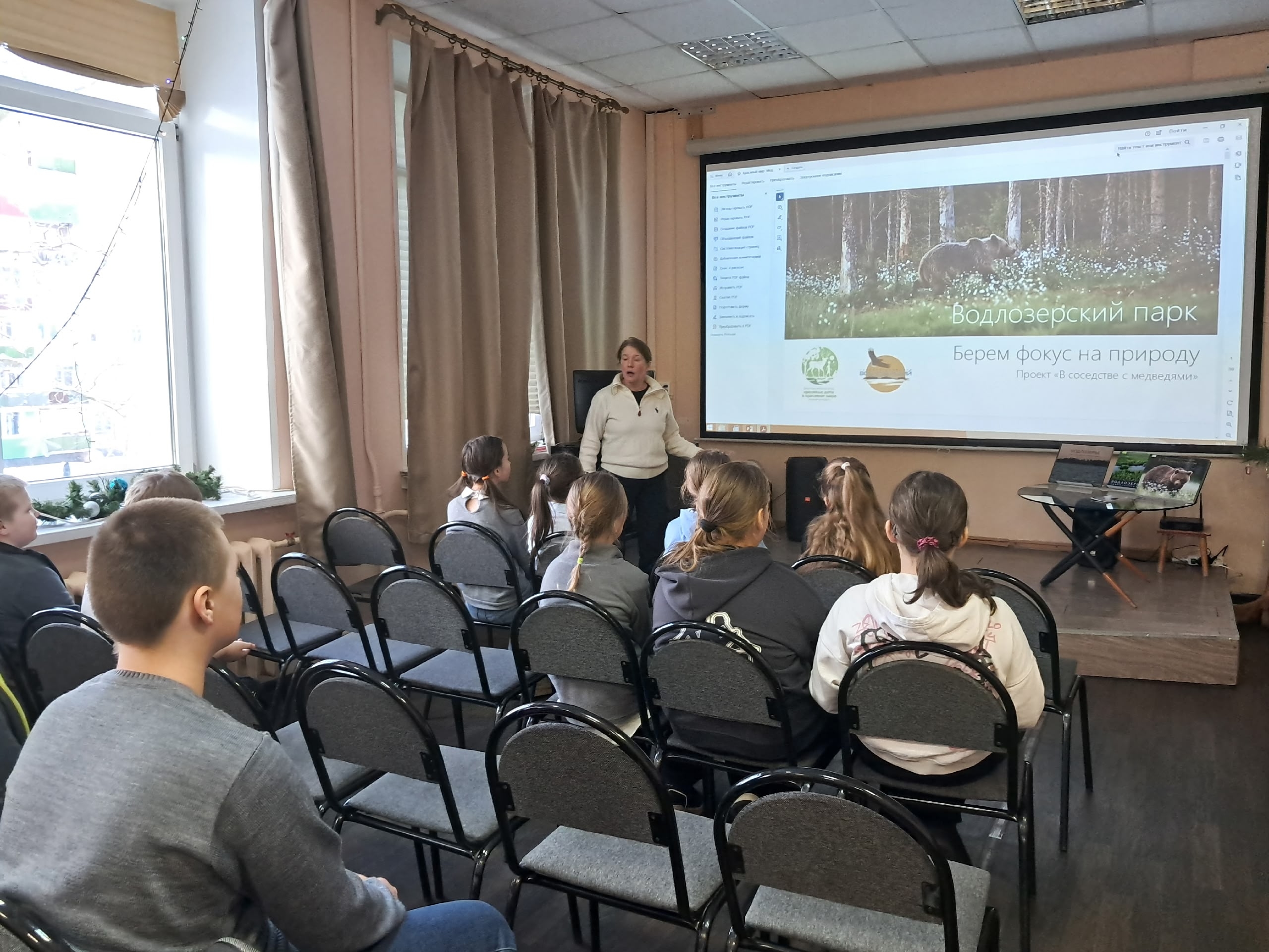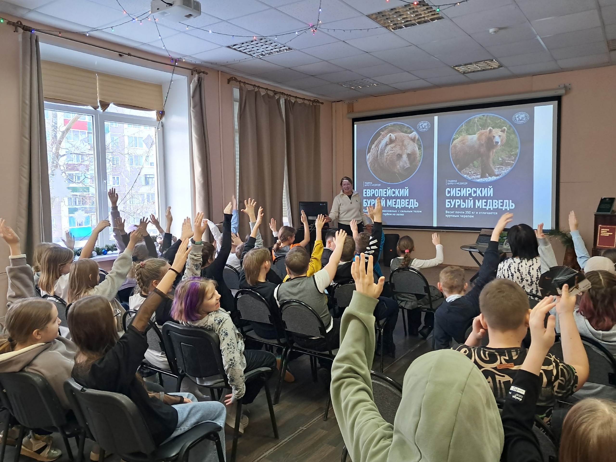 В минувший четверг конференц-зал библиотеки заполнили школьники. Для учеников 4-х и 5-х классов сотрудники парка провели занятие в рамках проекта «В соседстве с медведями». Самый крупный хищник северной тайги, один из символов Карелии и герой многочисленных легенд и сказок предстал перед ребятами во всей красе. Юные кондопожане не только хорошо знают бурого медведя, но и осведомлены о его родственниках: вопросы о белом, очковом и гималайском медведях не вызвали у них затруднений. А вот о бурой медведице по имени Маня, чьи маршруты более года изучают специалисты парка, школьники услышали впервые. Они с интересом узнали о её жизни, привычках, а также о ходе проекта и выводах исследователей.