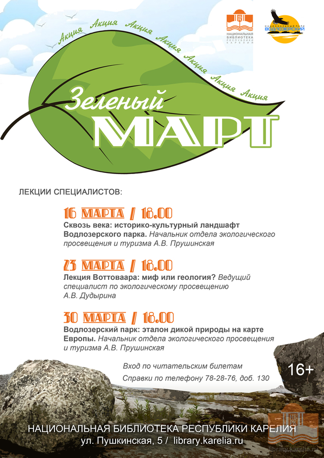 16 марта в Национальной библиотеке Карелии состоится лекция «Сквозь века: историко-культурный ландшафт Водлозерского парка» в рамках акции «Зелёный март».