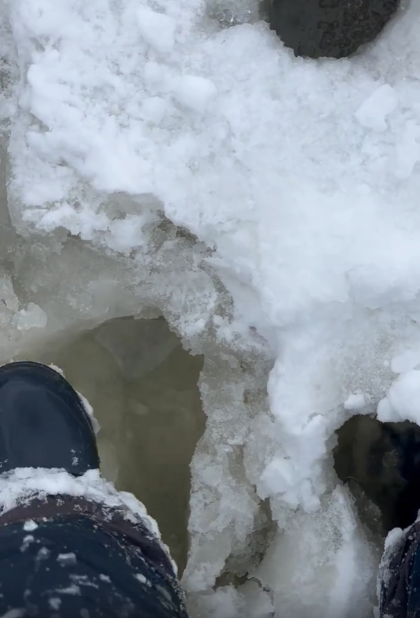 Мы призываем вас передвигаться только по накатанной снегоходной дороге — там лёд пока сохраняет прочность, не выходить на лёд вне проверенных маршрутов и внимательно следить за новостями и оперативной информацией от парка.