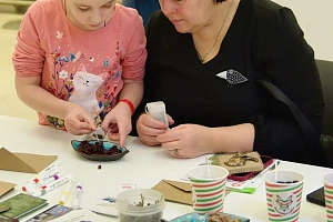 На втором мастер-классе «Дрифтвуд: сувенир из сердца Водлозерья» гости создавали экосувениры своими руками. В основе — дрифтвуд, дерево, отполированное водами озера Водлозеро и бережно собранное специалистами парка. Под кистями участников на дереве расцветали узоры карельской росписи: цветы и ягоды. Каждый унёс с собой не просто сувенир, а настоящую частичку заповедной природы.